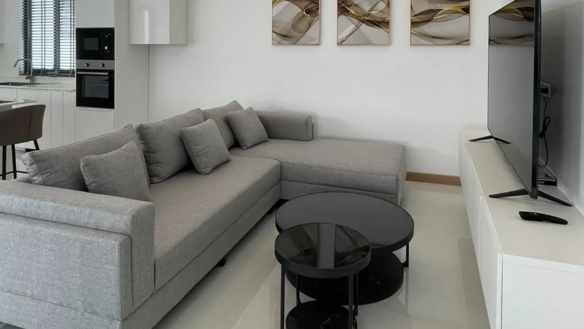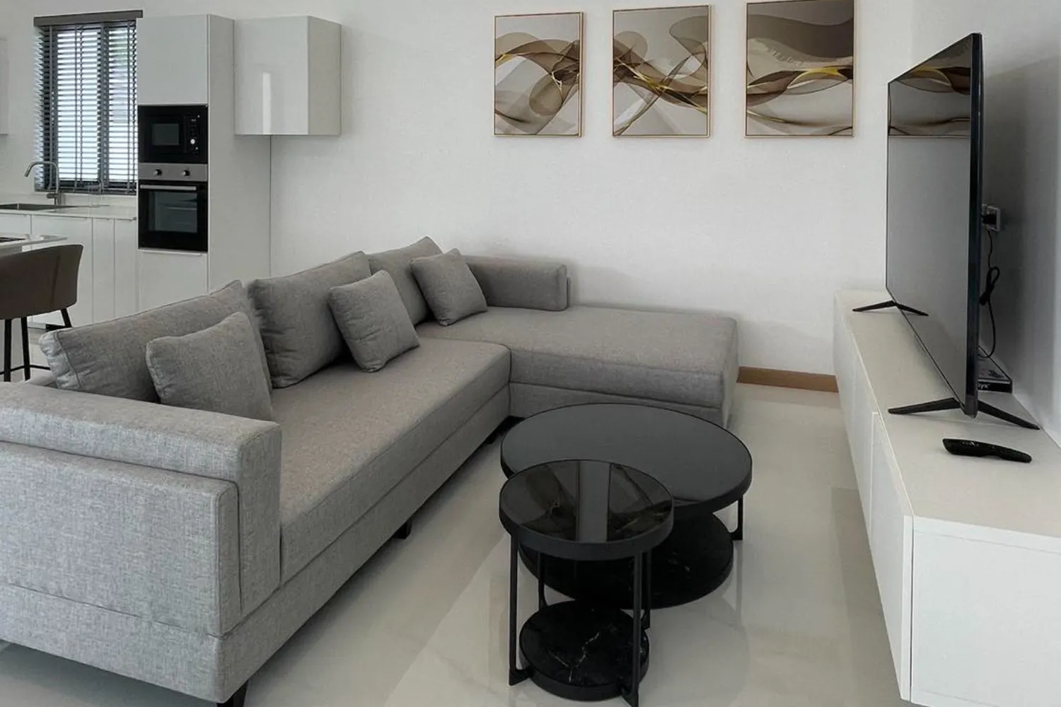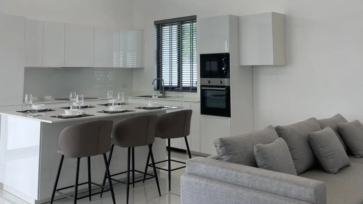 Auf großzügigen 279 Quadratmetern Innenraum, eingebettet auf einem weitläufigen 400 Quadratmetern Land (Villa B), bietet diese Residenz drei sorgfältig ausgestatteten Schlafzimmern und vier luxuriös ausgestatteten Badezimmern und verspricht anspruchsvollen Kennern eine dauerhafte Eigentümerschaft. Im Zentrum befindet sich ein geräumiges Wohnzimmer, nahtlos integriert mit einer offenen Küche, verziert mit hochwertigen Geräten, einer zentralen Insel und schicken Möbeln, die das elegante architektonische Ästhetik der Villa widerspiegeln.