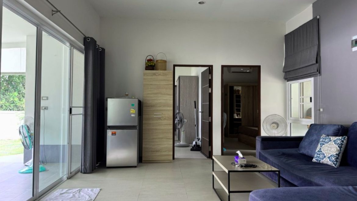 Dieses charmante Einfamilienhaus in begehrter Lage von Hin Lek Fai bietet Ihnen alles, was Sie für ein komfortables und entspanntes Leben benötigen. Der gepflegte Bungalow befindet sich auf einem großzügigen Eckgrundstück von 846 m² in der beliebten und ruhigen Wohnanlage „Green Field“, einem offenen Village, das für seine idyllische Atmosphäre und gut gepflegten Umgebungen bekannt ist.