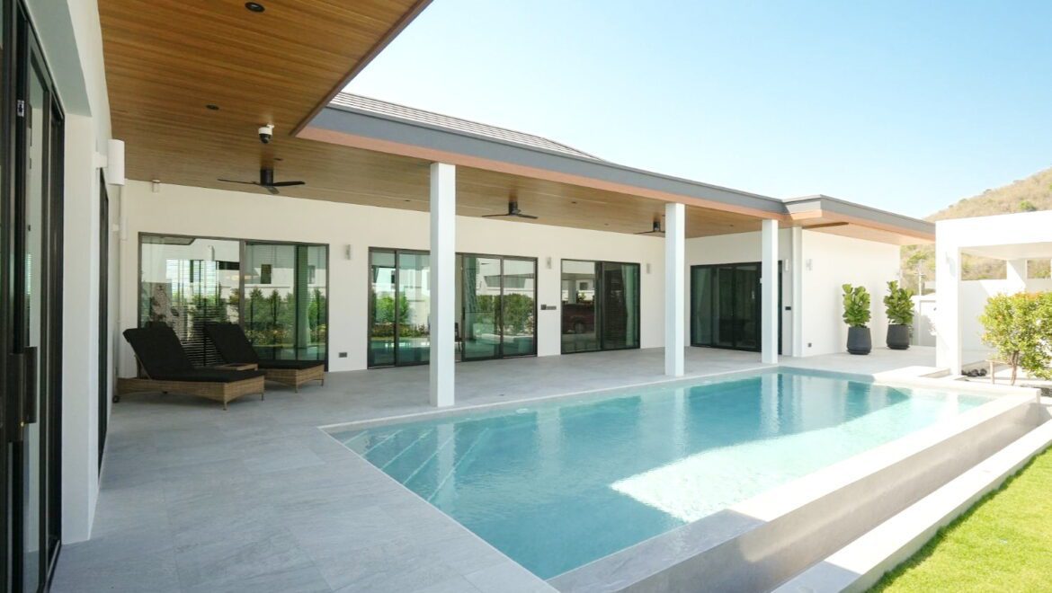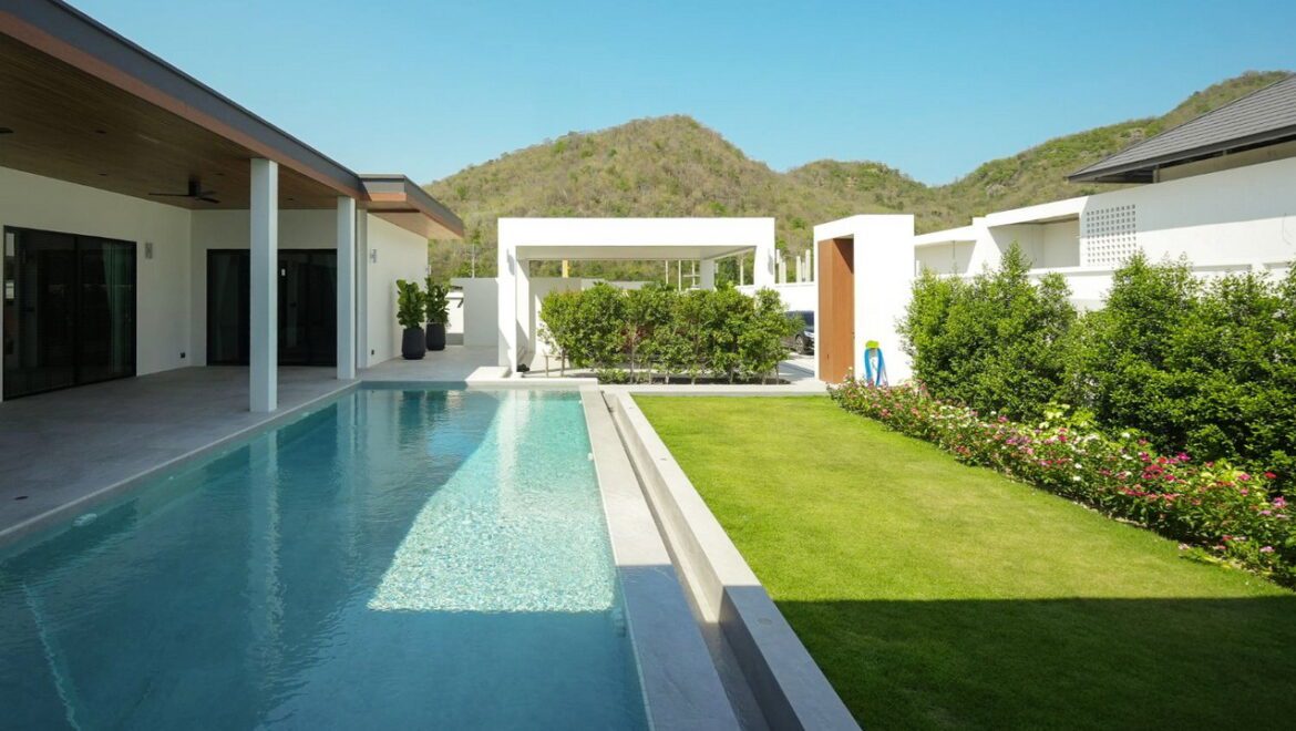 Entdecken Sie luxuriöses Wohnen in tropischer Umgebung – mit den neuen Poolvillen im Projekt Hillside Hamlet in Hua Hin. Diese hochwertige Wohnanlage liegt in ruhiger und dennoch zentraler Lage, nur wenige Minuten vom Hua Hin sowie dem renommierten Pineapple Valley Golf Club entfernt. Umgeben von sanften Hügeln und üppigem Grün bietet diese exklusive Wohngegend ein Höchstmaß an Lebensqualität, Privatsphäre und Komfort.