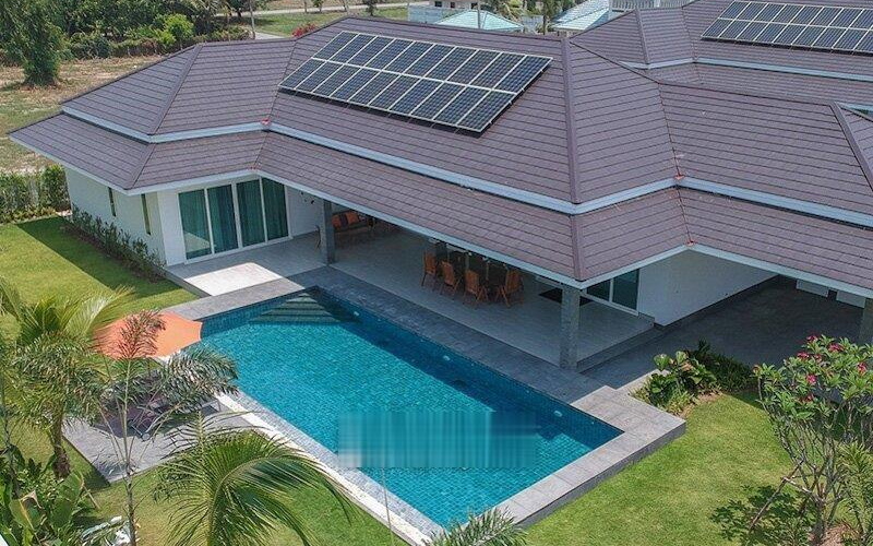 Jede dieser Luxusvillen ist mit 5,40 KW Solarmodulen der Klasse A ausgestattet, die etwa 4.000 Baht Strom pro Monat einsparen.