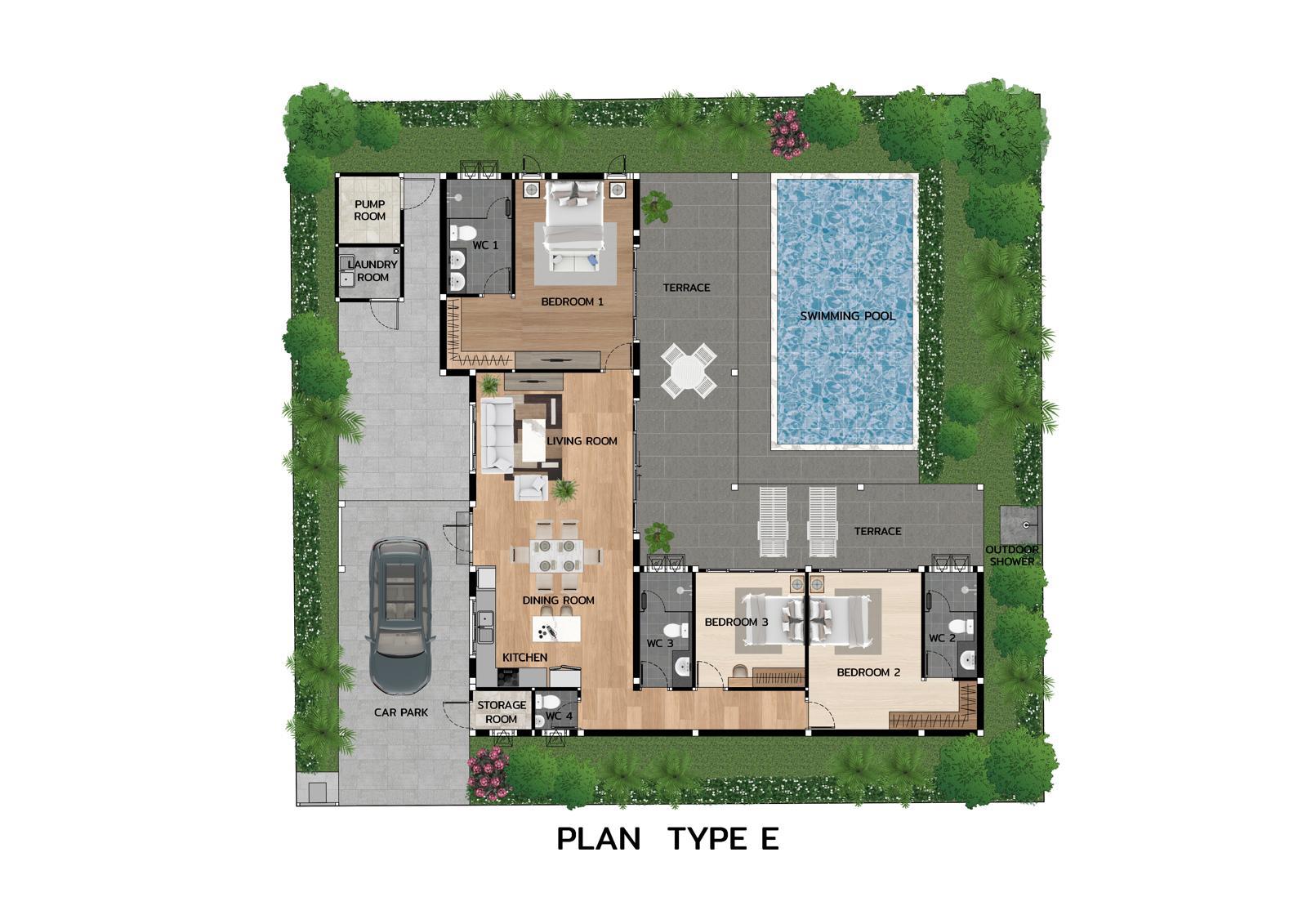 Da wir Wert darauf legen, größtmöglichen Komfort zu bieten, verfügt jede Villa über eine Inverter-Klimaanlage, einen Wasch-/Hauswirtschaftsraum und einen überdachten Carport. Für einen zusätzlichen Hauch von Luxus ist auf Anfrage ein Möbelpaket erhältlich, das sicherstellt, dass Ihr neues Zuhause Sie mit offenen Armen willkommen heißt.