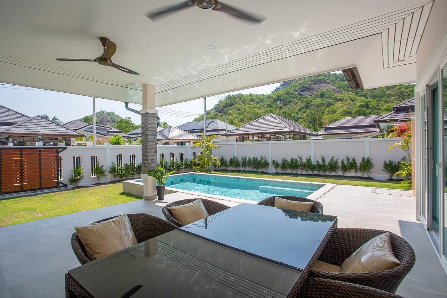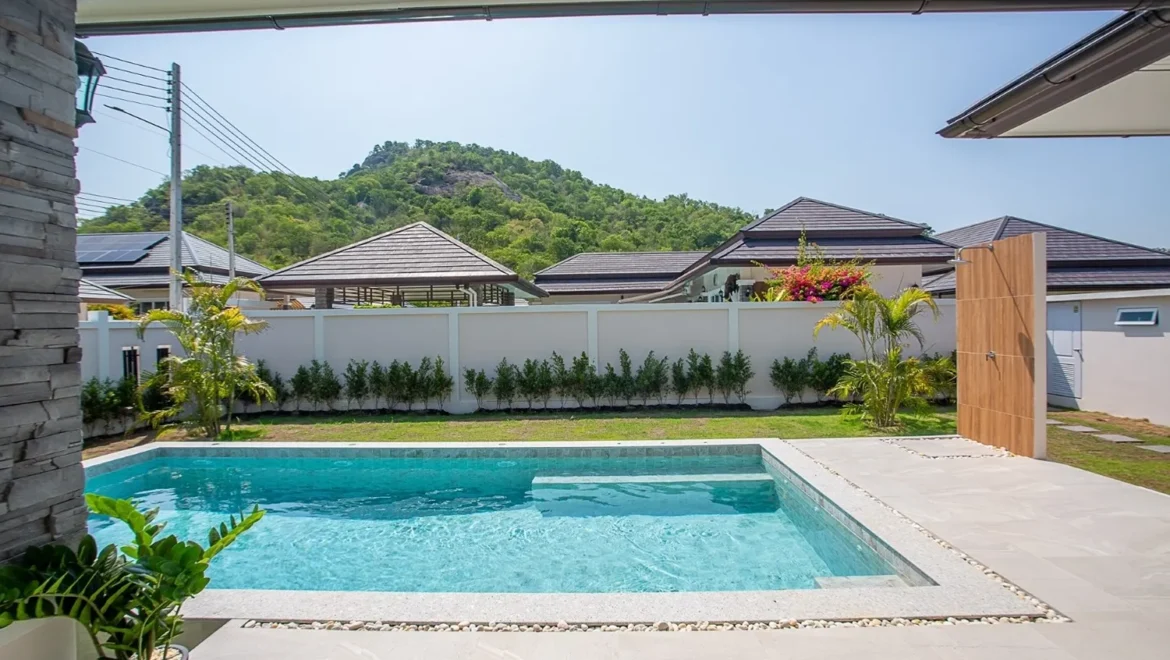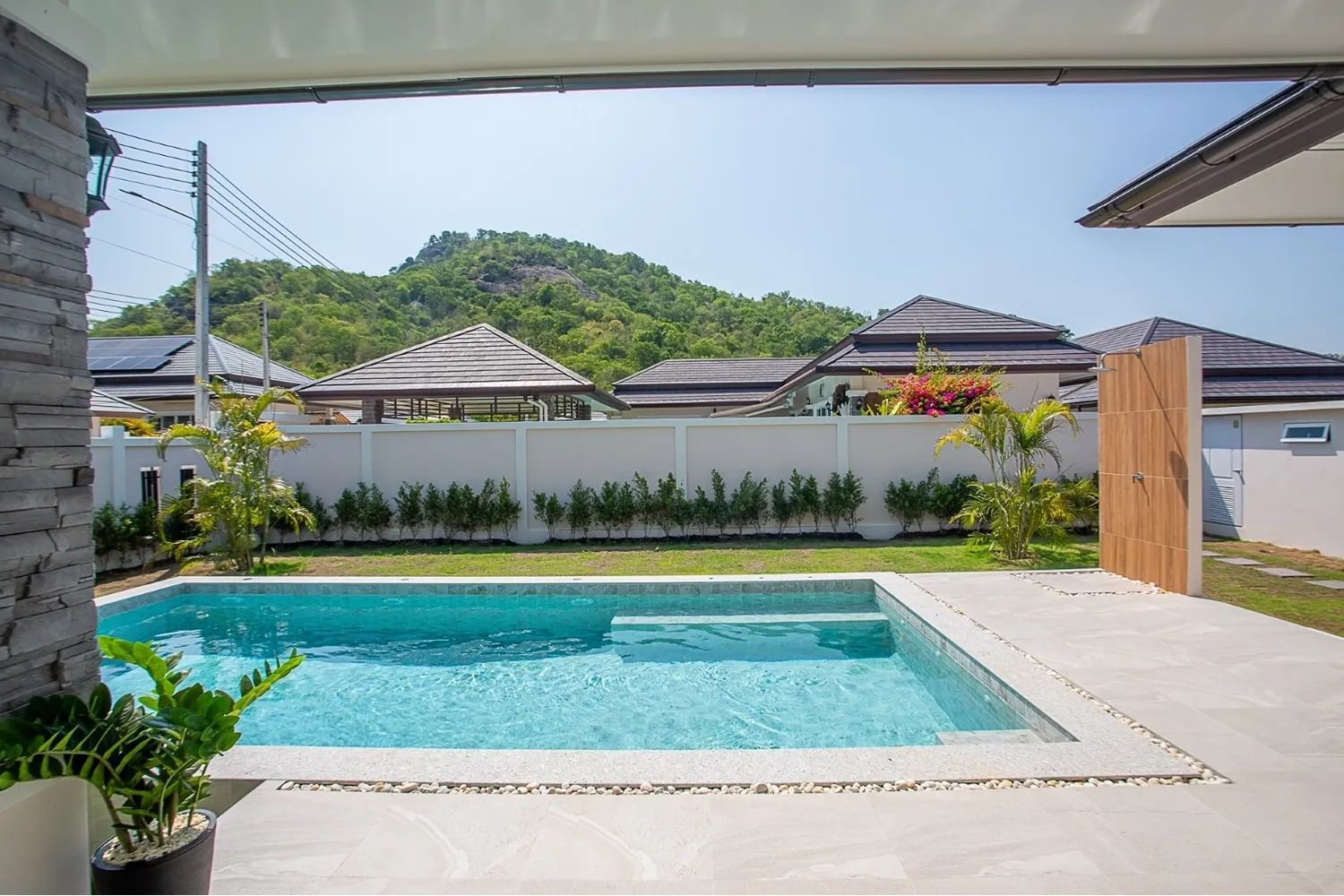Entdecken Sie Ihr Paradieshaus, idyllisch am Hang gelegen, mit eigenem Swimmingpool. Nur 5 Kilometer vom Stadtzentrum Hua Hin‘s, dem Hua Hin Strand und dem beliebten Nachtmarkt entfernt, und nur 8 Kilometer vom Black Mountain Golfplatz, dem Wasserpark und der internationalen Schule Hua Hin, bietet diese Lage sowohl Komfort als auch Ruhe. Die Villen werden ausschließlich mit den besten lokalen Materialien gebaut, und Sie haben die Möglichkeit, Ihre Villa mit Granit, Holz und Keramik nach Ihrem persönlichen Geschmack zu gestalten. Dies ist eine einmalige Gelegenheit, das tropische Zuhause Ihrer Träume zu erschaffen.