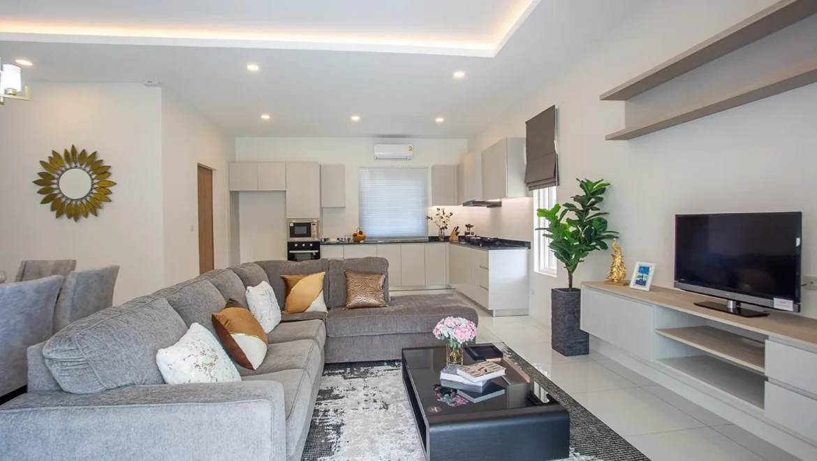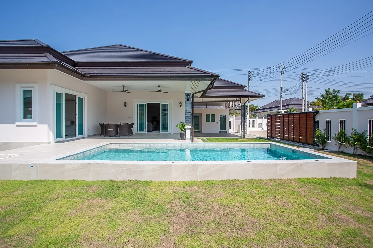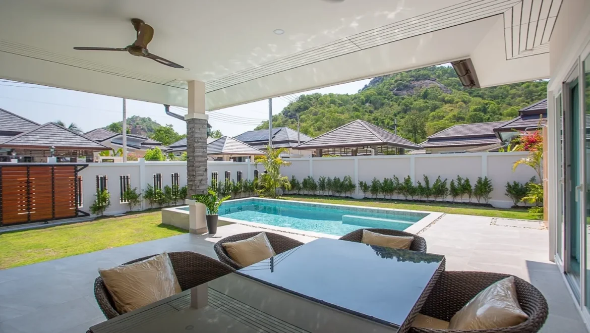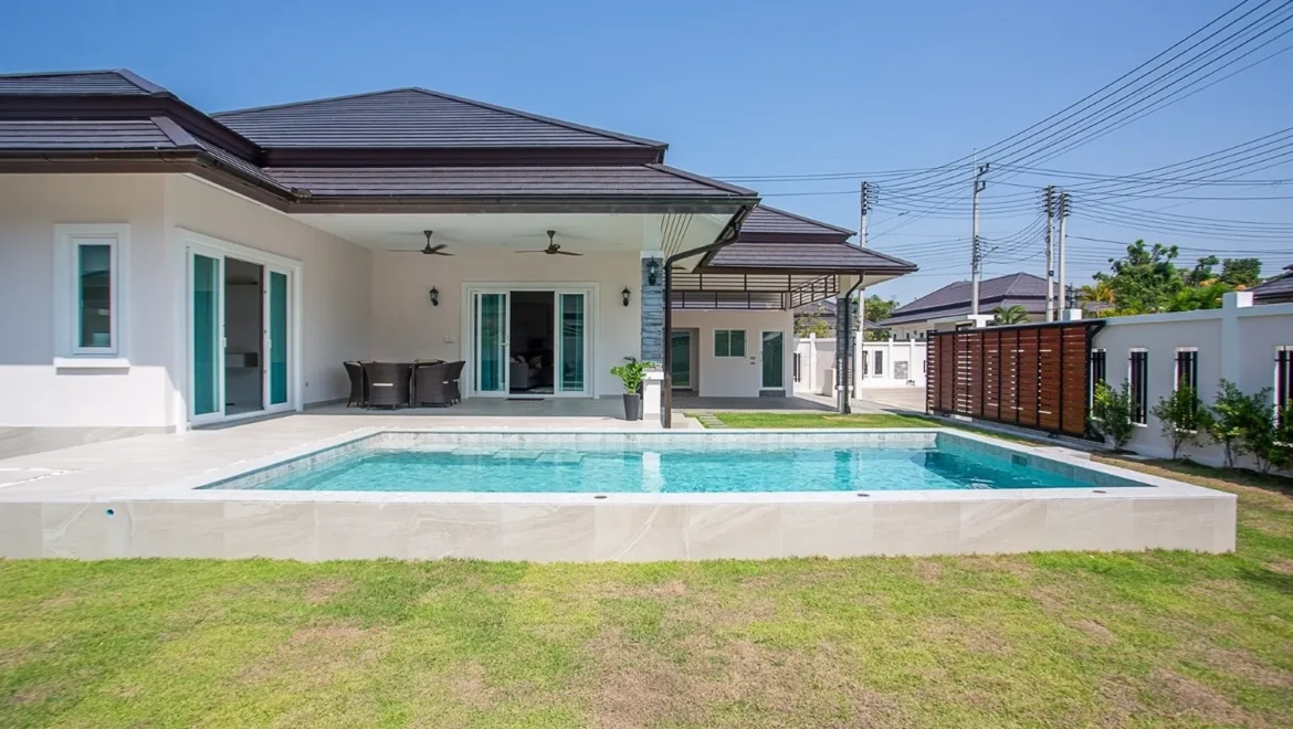 Entdecken Sie Ihr Paradieshaus, idyllisch am Hang gelegen, mit eigenem Swimmingpool. Nur 5 Kilometer vom Stadtzentrum Hua Hin‘s, dem Hua Hin Strand und dem beliebten Nachtmarkt entfernt, und nur 8 Kilometer vom Black Mountain Golfplatz, dem Wasserpark und der internationalen Schule Hua Hin, bietet diese Lage sowohl Komfort als auch Ruhe. Die Villen werden ausschließlich mit den besten lokalen Materialien gebaut, und Sie haben die Möglichkeit, Ihre Villa mit Granit, Holz und Keramik nach Ihrem persönlichen Geschmack zu gestalten. Dies ist eine einmalige Gelegenheit, das tropische Zuhause Ihrer Träume zu erschaffen.