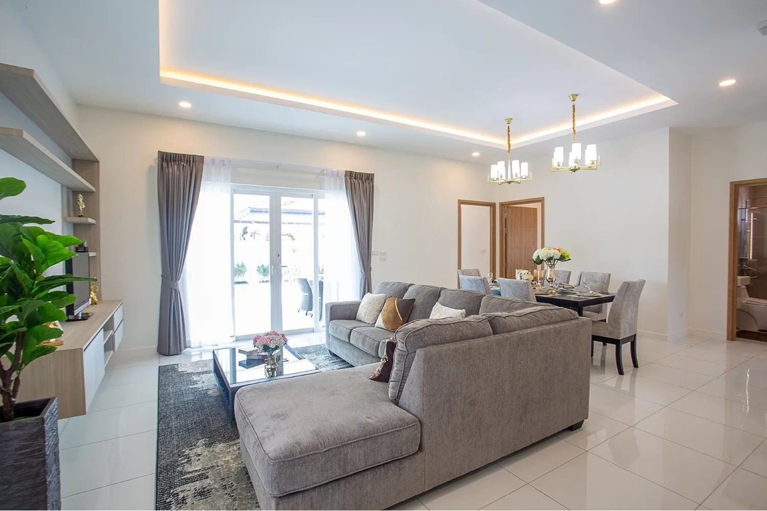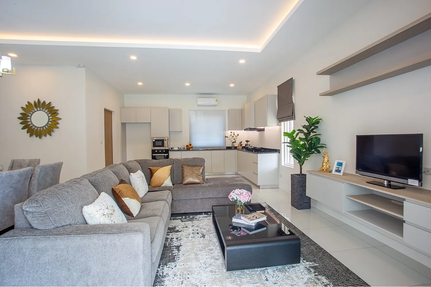 Das Hua Hin Grand Hills bietet luxuriöses Resort-Wohnen mit privaten Swimmingpools und wunderschön angelegten Gärten. Jede Villa ist mit hochwertigen Möbeln ausgestattet, die höchsten Komfort bieten. Die Anlage bietet zahlreiche Annehmlichkeiten wie einen Garten, einen Spielplatz, Geschäfte, Restaurants und kostenfreies WLAN im Lobbybereich. Die Lage befindet sich in einer reizvollen Region von Hua Hin, umgeben von einem atemberaubenden 360-Grad-Blick auf grüne Täler, was ein friedliches Refugium mit einem ganzjährig angenehmen Klima schafft. Nur 5 Kilometer vom Stadtzentrum entfernt, ist das Projekt auch in der Nähe beliebter Sehenswürdigkeiten wie Khao Hin Lek Fai, dem Hua Hin Nachtmarkt und dem Hua Hin Strand gelegen. Frischmärkte, Restaurants und Einkaufsmöglichkeiten befinden sich ebenfalls in unmittelbarer Nähe, sodass alle Bedürfnisse bequem erfüllt werden können.
