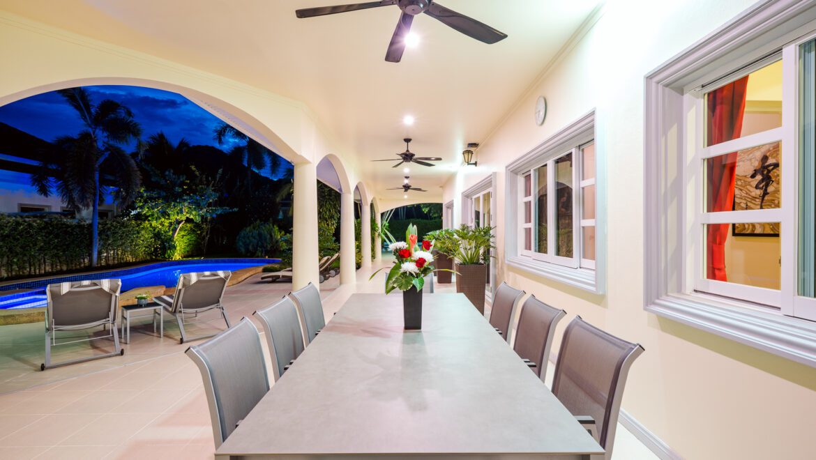 - Großer privater Swimmingpool: Das Herzstück dieser Villa ist der weitläufige Poolbereich – perfekt zum Entspannen, Sonnenbaden oder für gesellige Abende im Freien. Die gepflegte Gartenanlage sorgt für eine angenehme, tropische Atmosphäre und absolute Ruhe.
