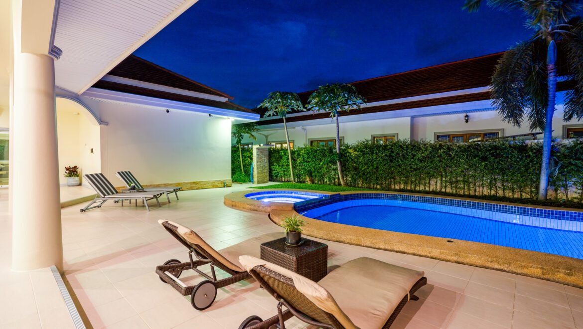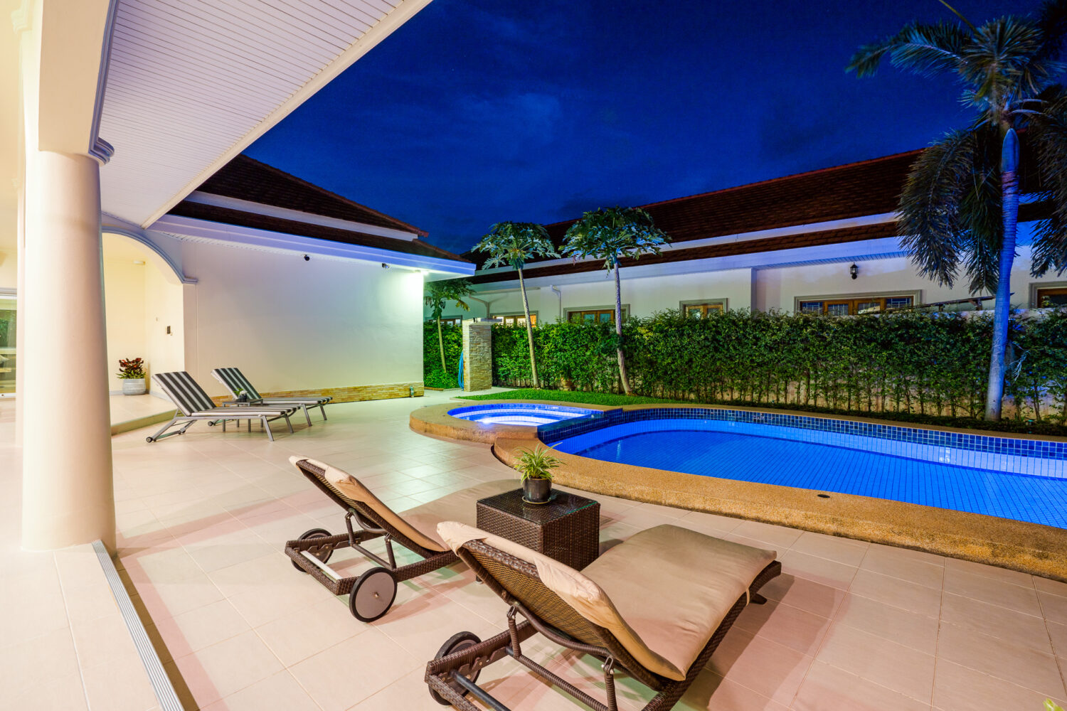 Diese stilvolle und moderne Poolvilla befindet sich in einer ruhigen, beliebten Wohngegend nahe Soi 112 in Hua Hin. Mit 3 Schlafzimmern und 4 Badezimmern bietet sie großzügigen Wohnkomfort, moderne Ausstattung und ein hohes Maß an Privatsphäre. Ideal für alle, die langfristig in Thailand leben möchten, ohne gleich eine eigene Immobilie zu erwerben.
