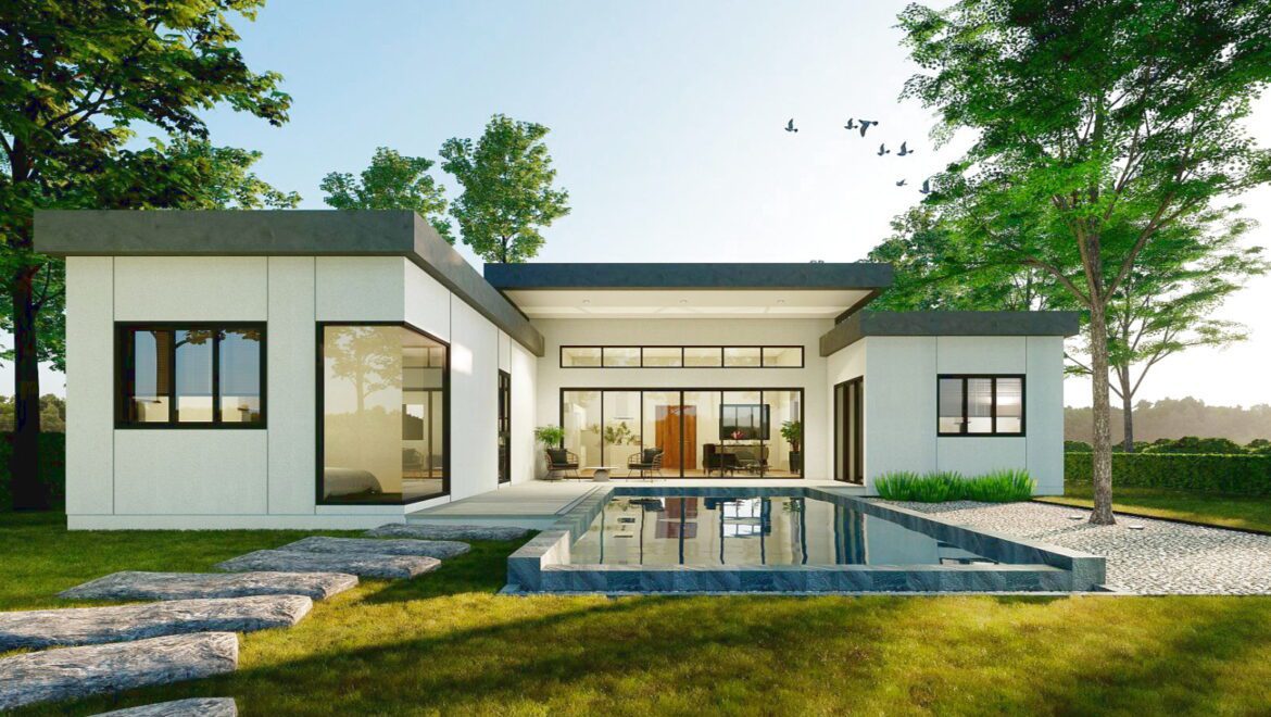 - Flachdach-Villa im modernen Design mit Spannbetondach